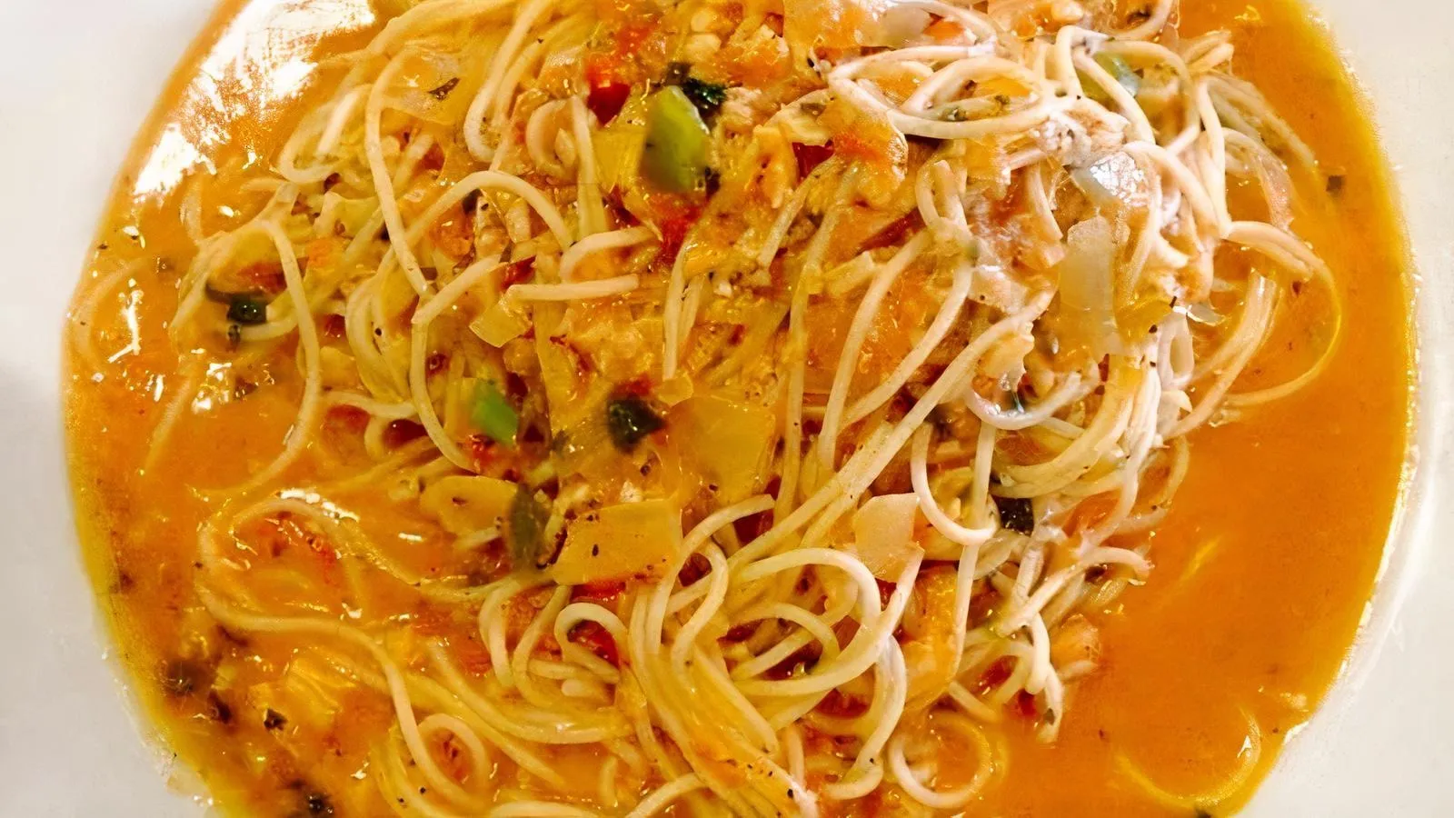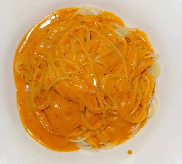 Roasted Peppers, Spinach, Pink Sauce, Spaghetti Pasta.