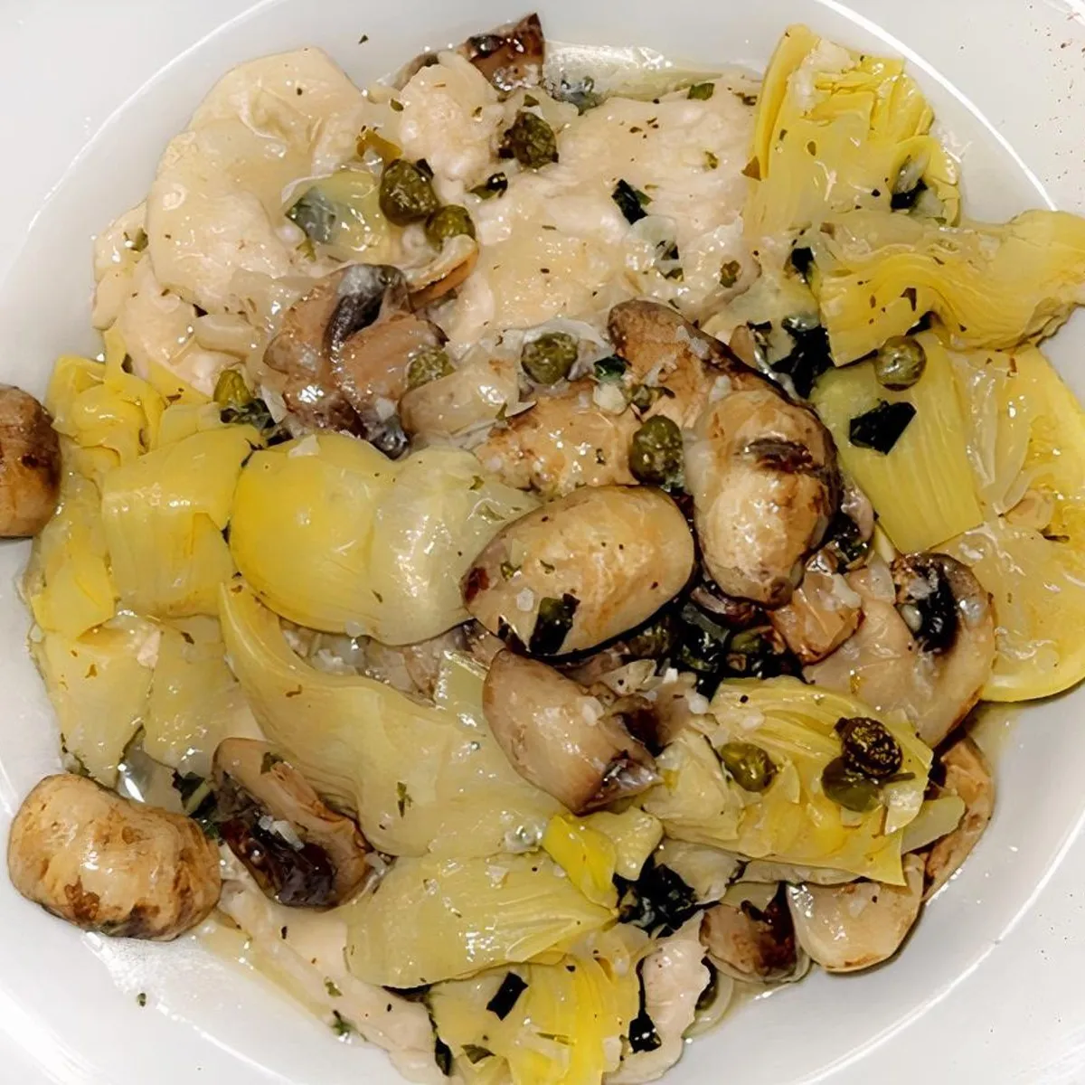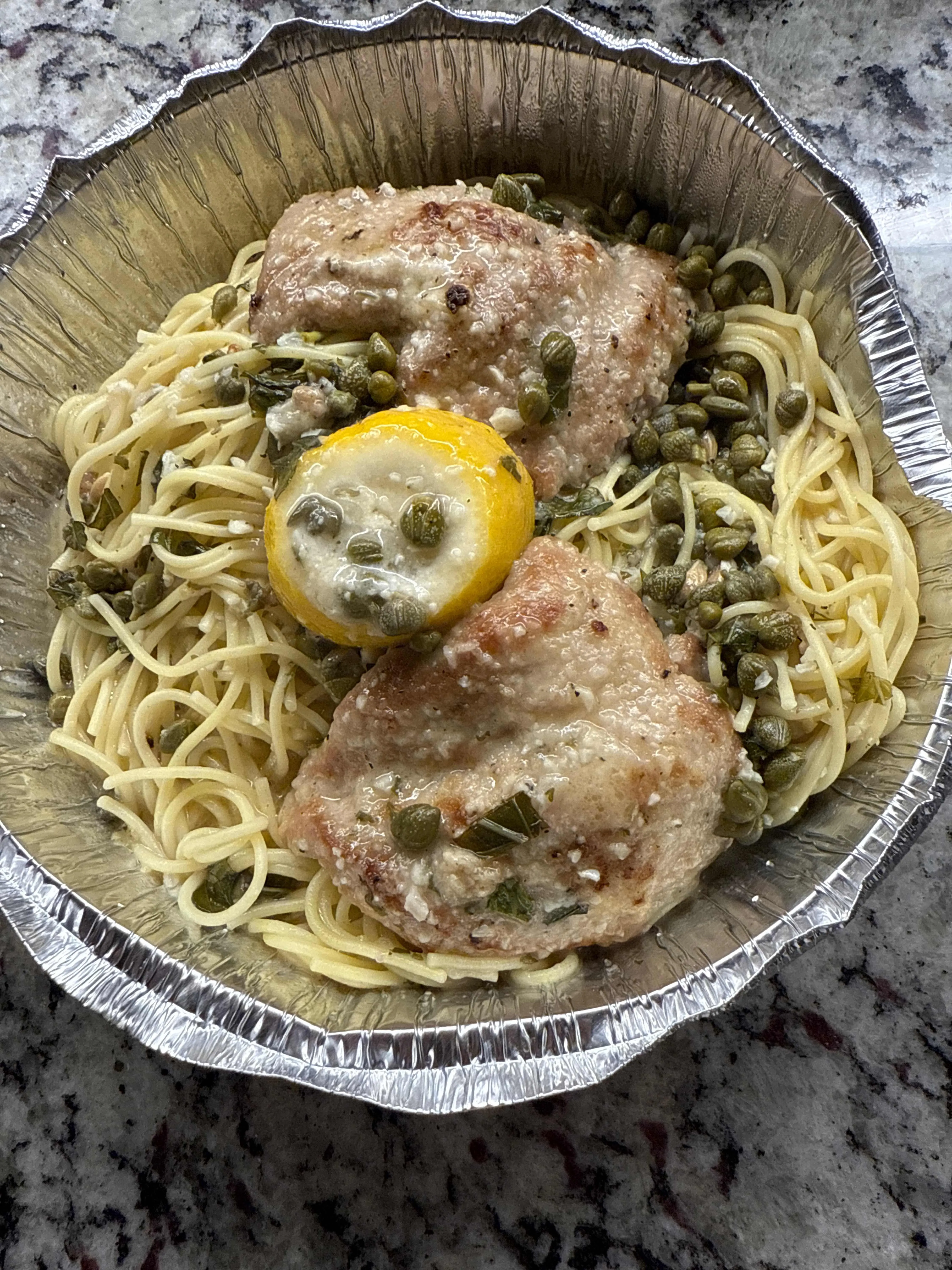 Capers In A White Wine, Lemon And Butter Sauce Over Spaghetti Pasta.