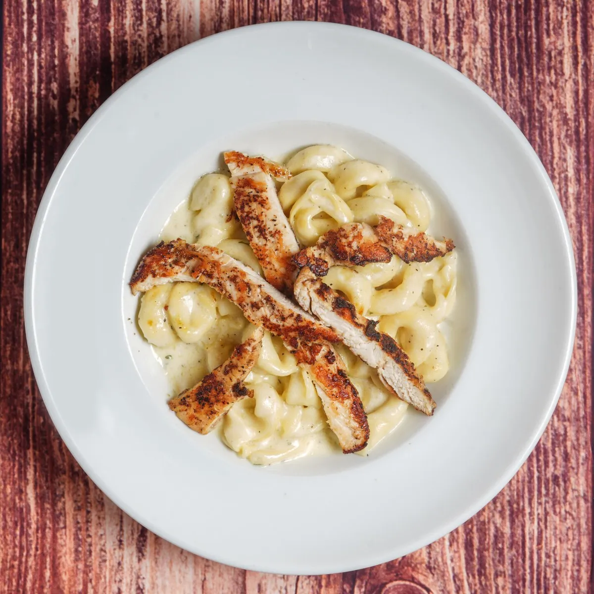 Cheese Tortelloni, Cream Sauce, A Touch Of Marinara.